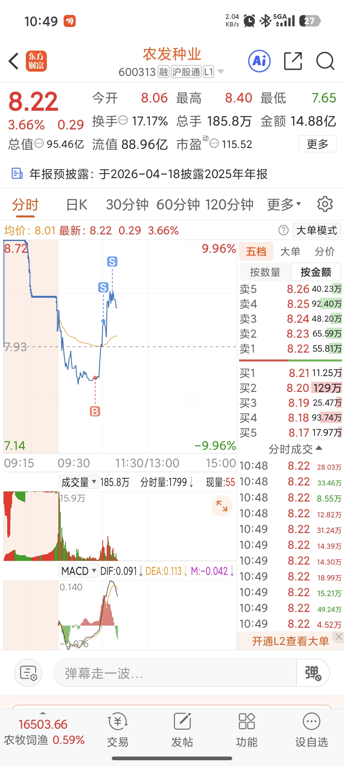 $农发种业(SH600313)$ 走的磨磨唧唧的,今天不涨停一下那真废劲了