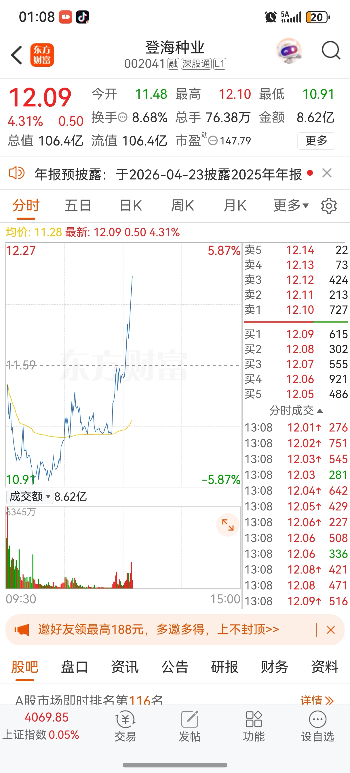 $农发种业(SH600313)$ 小弟都要涨停了 你还不拉
