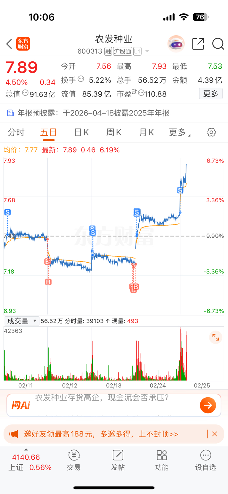 $农发种业(SH600313)$ 好家伙,又卖飞了,才挣一万块钱