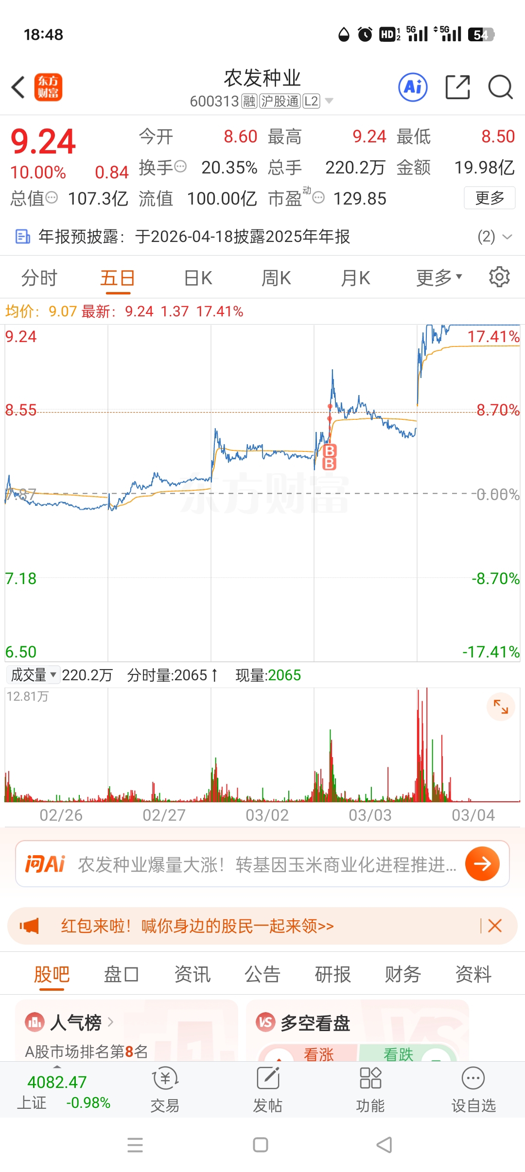 $农发种业(SH600313)$ 明天高开涨停,给我来个5连板