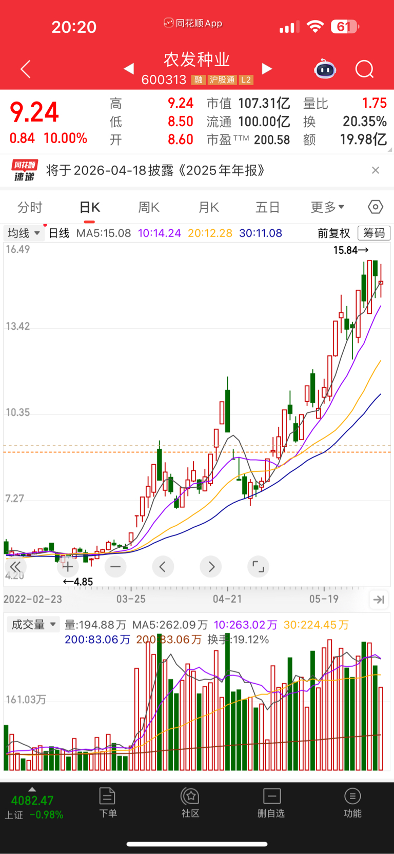 $农发种业(SH600313)$ 三月风口就是农业了,粮食安全,明天继续涨停了。作为参考