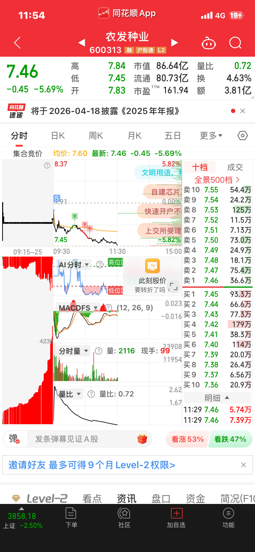 $农发种业(SH600313)$ 手里就2只,一只农发,一只佳力图,开盘全部清仓,太累了,明天销户好好生活。