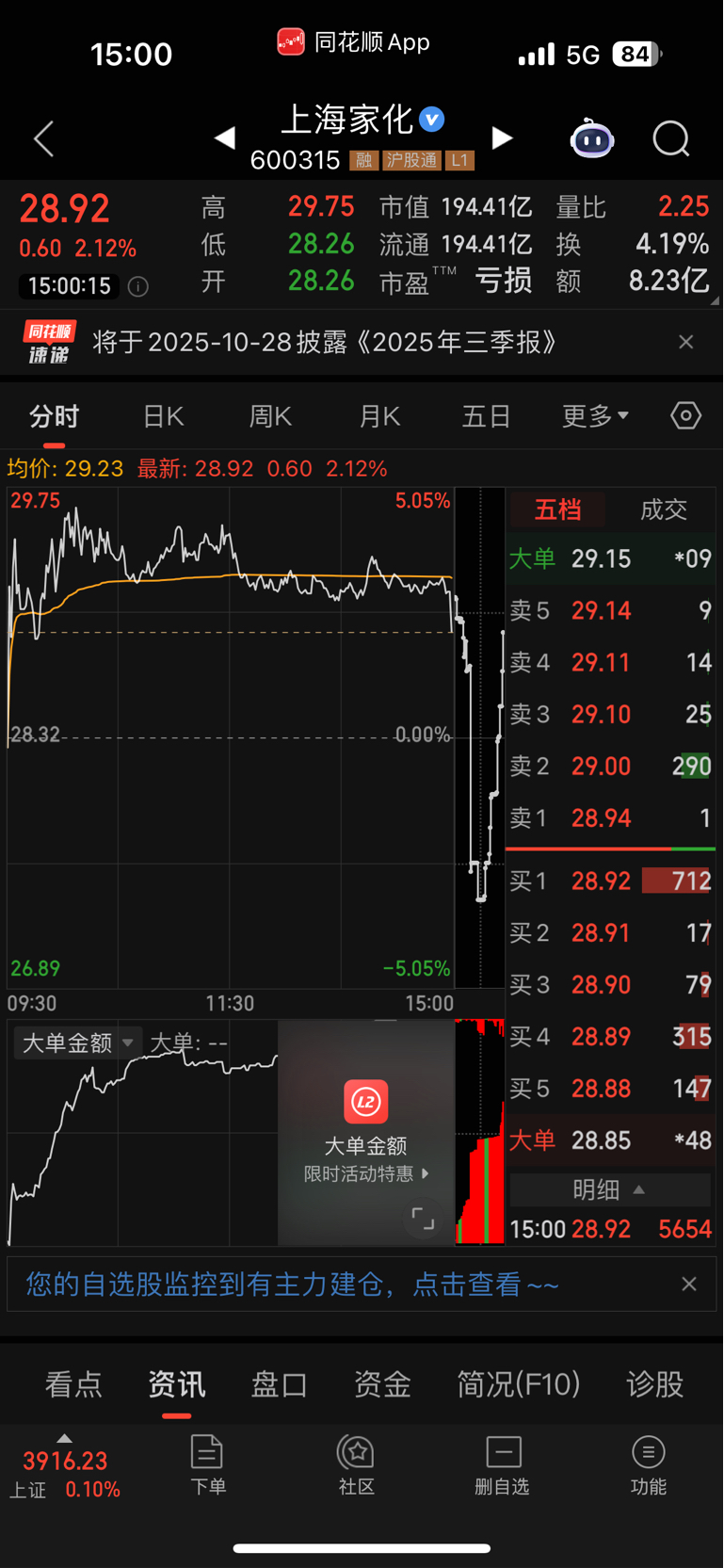 $上海家化(SH600315)$ 什么情况,最低打到27.4