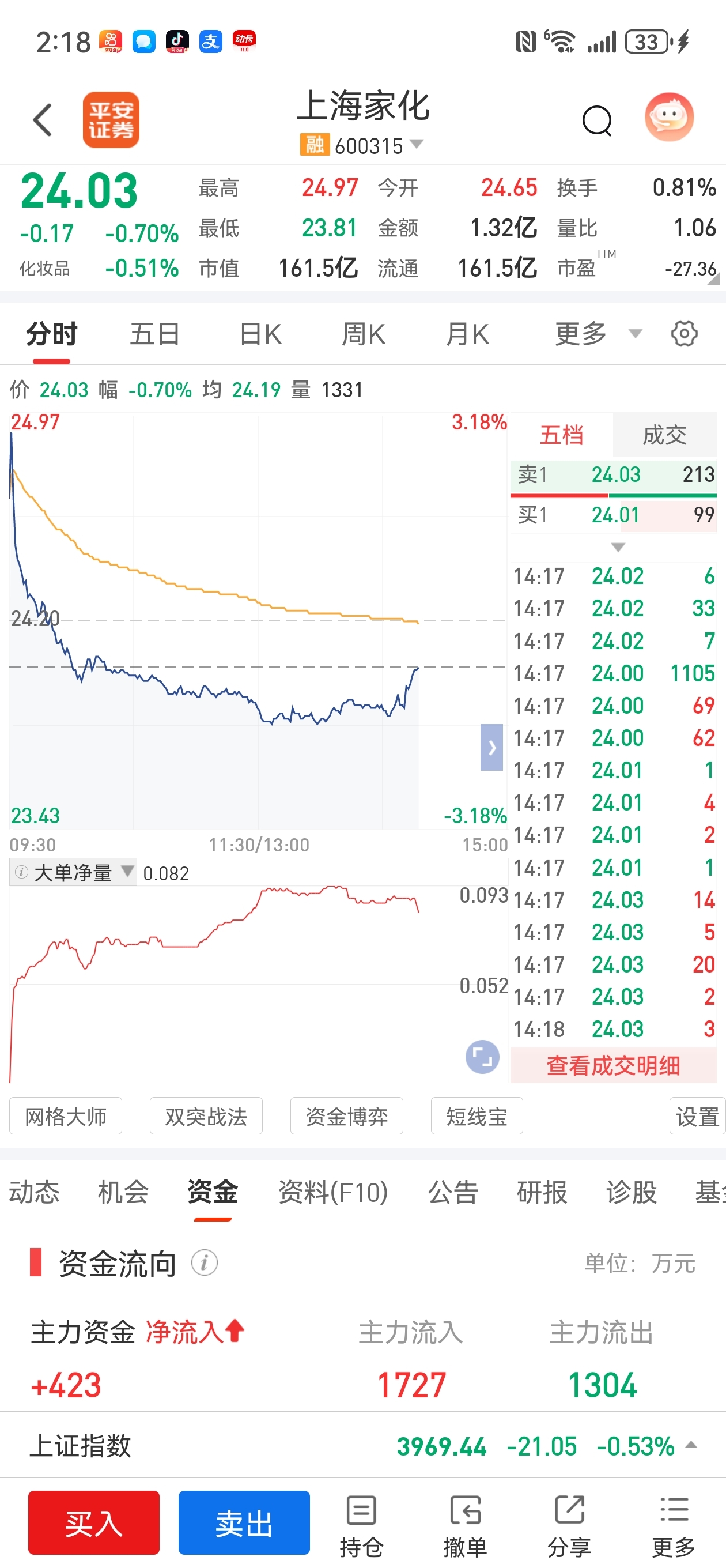 $上海家化(SH600315)$ 这么平滑的曲线,肯定已经被主力绝对控盘了