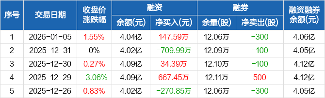 上海家化:融资净买入147.59万元,融资余额4.04亿元(01-05)