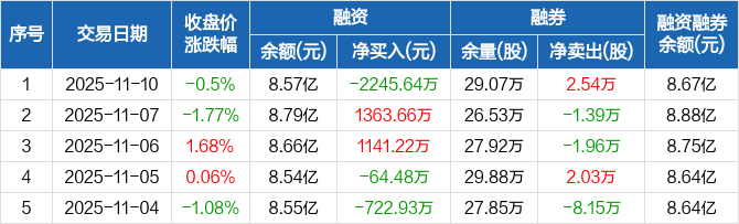 洪都航空:融资净偿还2245.64万元,融资余额8.57亿元(11-10)