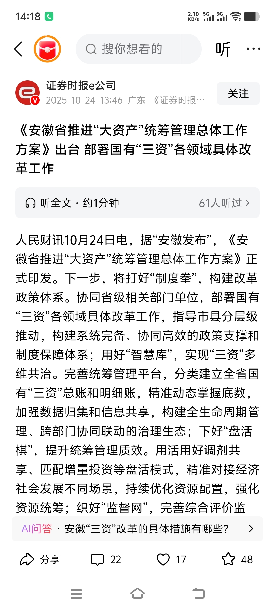 $新力金融(SH600318)$ 下周该表现了,安徽国资整合开始