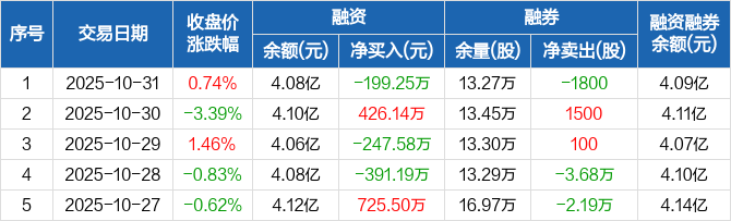 新力金融:融资净偿还199.25万元,融资余额4.08亿元(10-31)