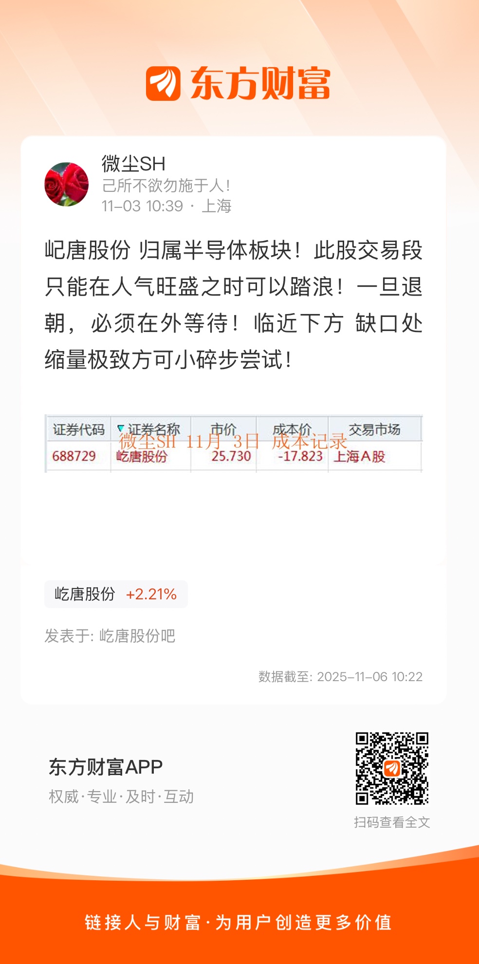 温馨提示: 1.根据《证券法》规定,禁止编造、传播虚假信息或者误导性信息,扰乱证券市场;2.用户在本社区发表的所有资料、言论等仅代表个人观点,与本网站立场无关,不对您构成任何投资建议。用户应基于自己的独立判断,自行决定证券投资并承担相应风险。《东方财富社区管理规定》