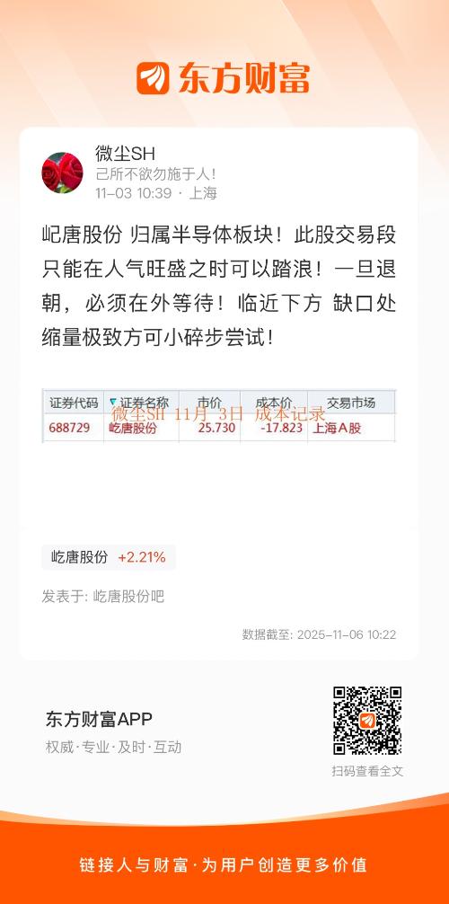 屺唐股份 归属半导体板块!此股交易段只能在人气旺盛之时可以踏浪!一旦退朝,必须在外等待!临近下方 缺口处 缩量极致方可小碎步尝试!