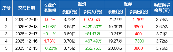 新力金融:融资净买入697.05万元,融资余额3.72亿元(12-19)
