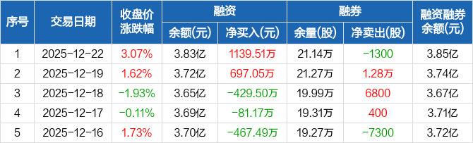 新力金融:融资净买入1139.51万元,融资余额3.83亿元(12-22)