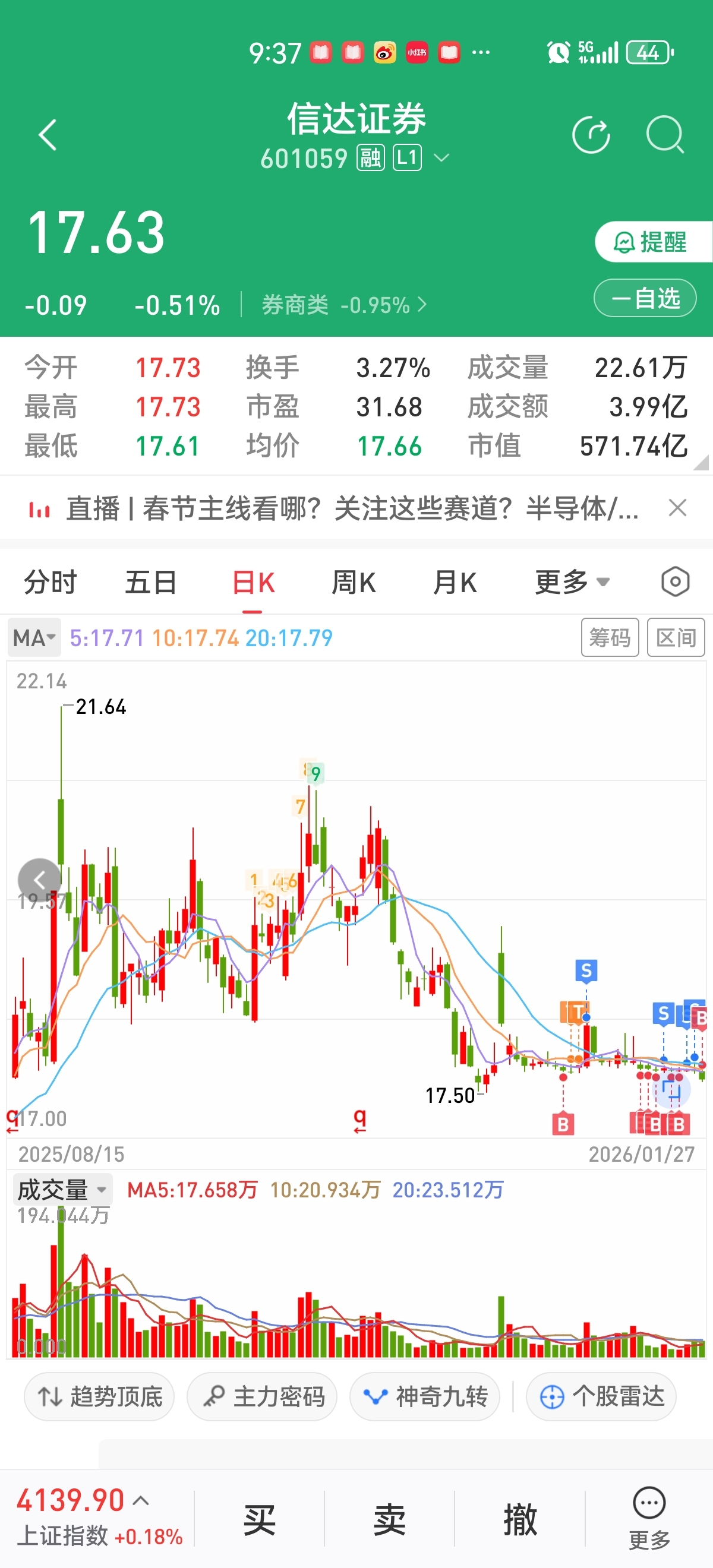 $新力金融(SH600318)$ 看看价格好不错就继续买回,看看给不给继续套利的机会。