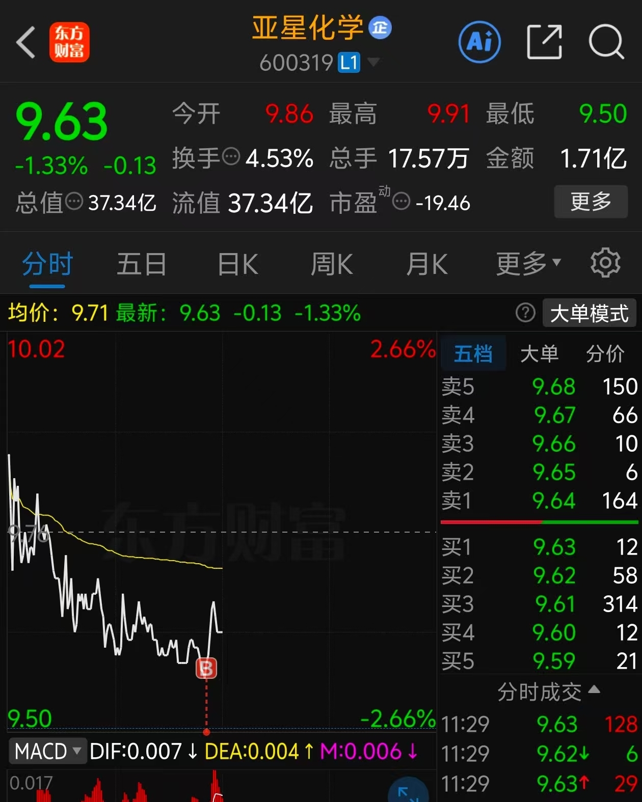 $亚星化学(SH600319)$ #炒股日记# #复盘记录# 我去,早上好刚挂了个9.5