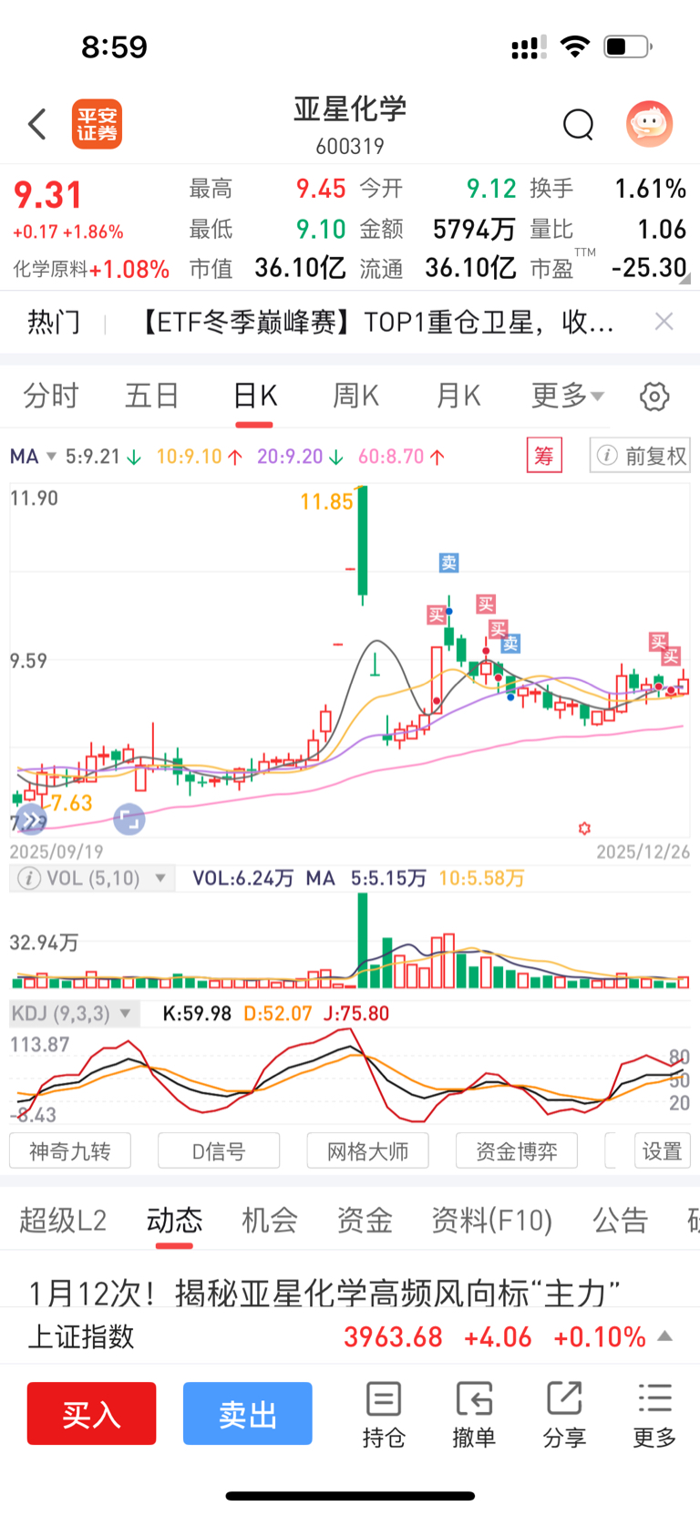 $亚星化学(SH600319)$ 上次说还没调整到位,这两天重新买回来了。严格按照技术位买的。坐等主力抬价