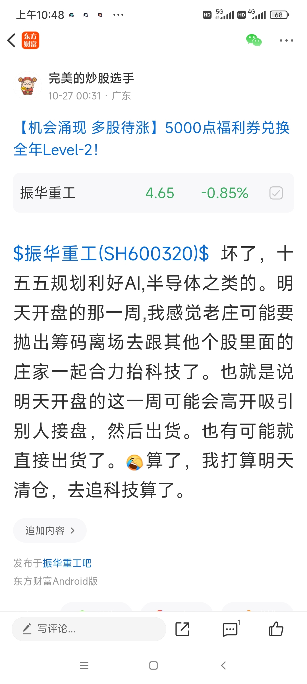 温馨提示: 1.根据《证券法》规定,禁止编造、传播虚假信息或者误导性信息,扰乱证券市场;2.用户在本社区发表的所有资料、言论等仅代表个人观点,与本网站立场无关,不对您构成任何投资建议。用户应基于自己的独立判断,自行决定证券投资并承担相应风险。《东方财富社区管理规定》