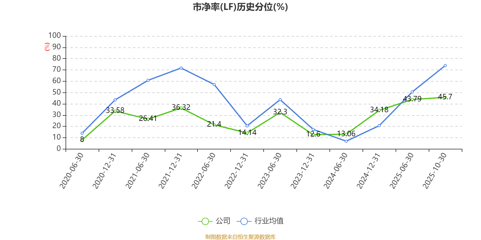 市盈率、市净率为负时,不显示当期分位数,会导致折线图中断。