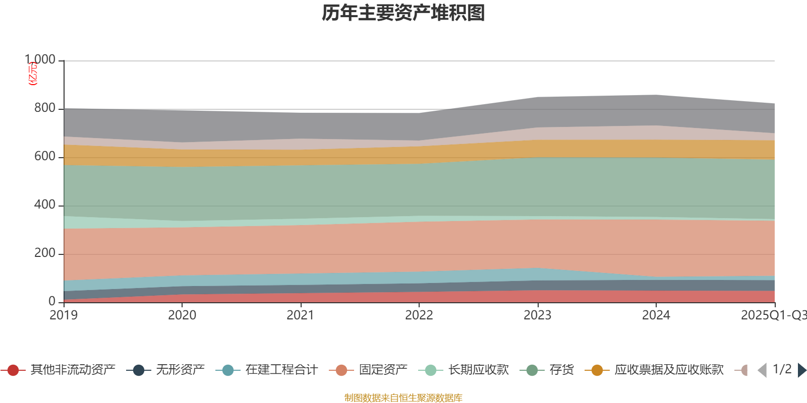 资产重大变化方面,截至2025年三季度末,公司货币资金较上年末减少49.62%,占公司总资产比重下降3.24个百分点;存货较上年末增加0.2%,占公司总资产比重上升1.3个百分点;应收票据及应收账款较上年末增加7.88%,占公司总资产比重上升1.09个百分点;在建工程合计较上年末增加40.36%,占公司总资产比重上升0.7个百分点。