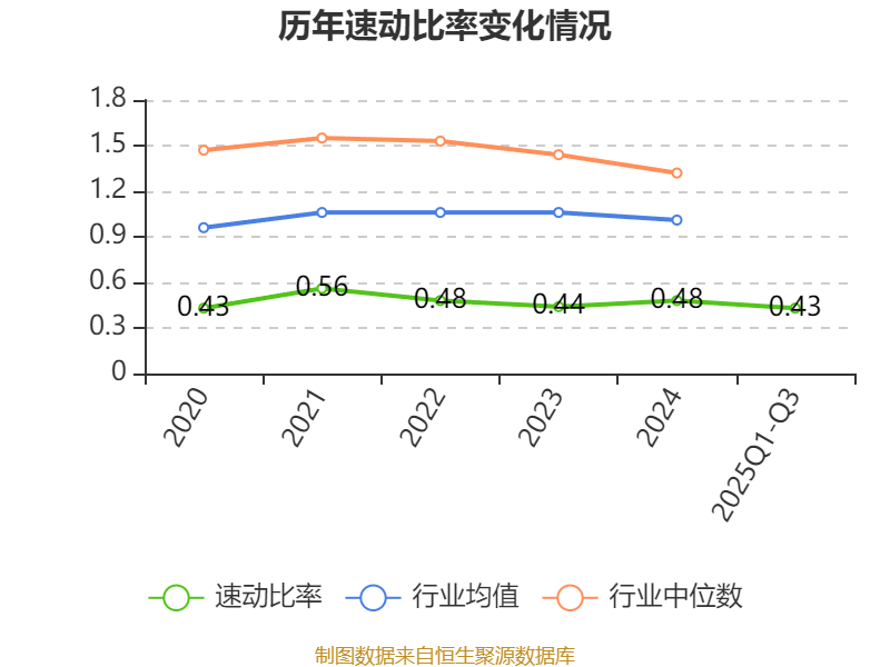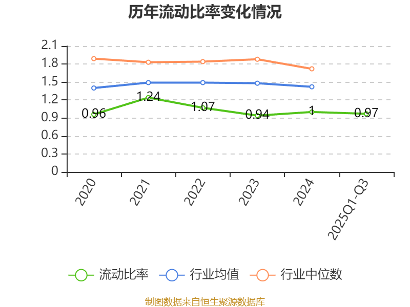2025年前三季度,公司流动比率为0.97,速动比率为0.43。