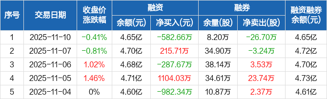 振华重工:融资净偿还582.66万元,融资余额4.65亿元(11-10)