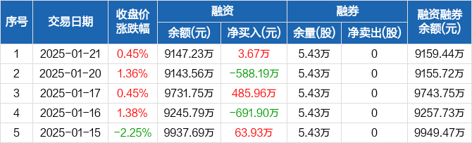 津投城开:融资净买入3.67万元,融资余额9147.23万元(01-21)