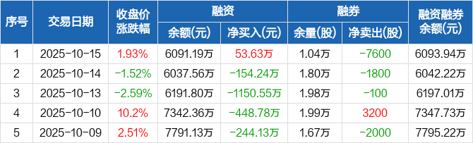 津投城开:融资净买入53.63万元,融资余额6091.19万元(10-15)