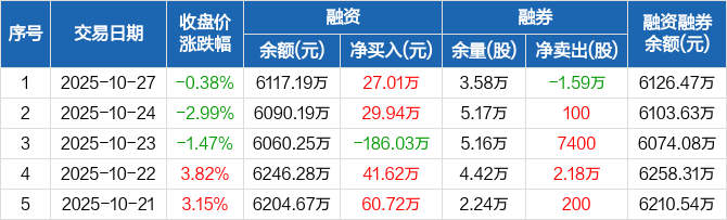 津投城开:融资净买入27.01万元,融资余额6117.19万元(10-27)