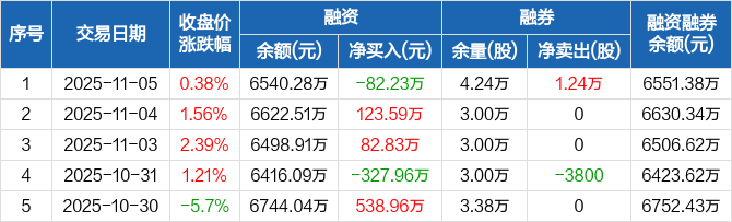 津投城开:融资净偿还82.23万元,融资余额6540.28万元(11-05)