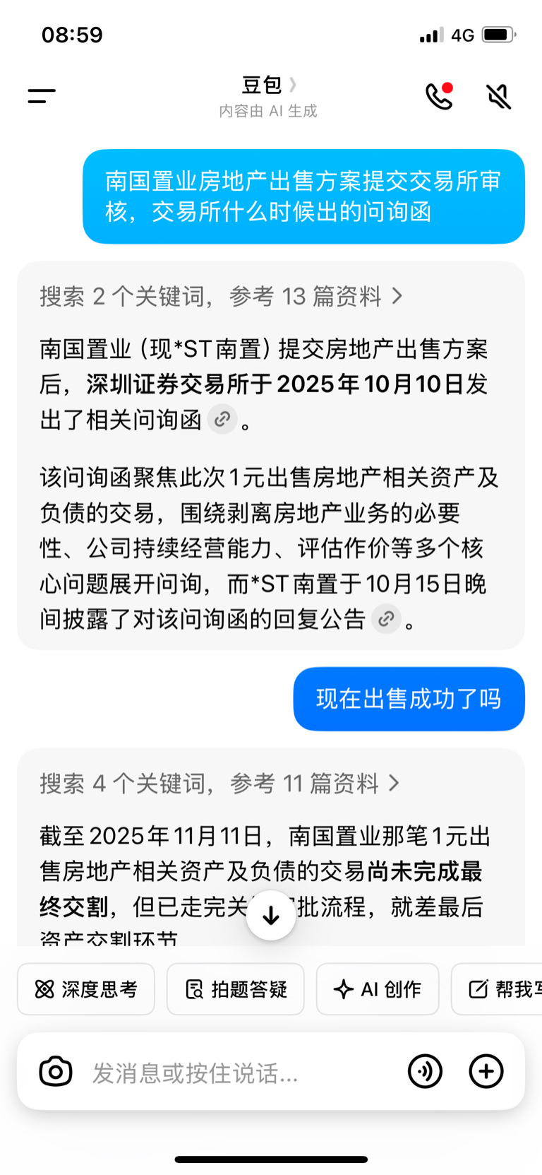 南国10月10日收到问询函,10月15日回复,10月31日走完内部审批流程,预计