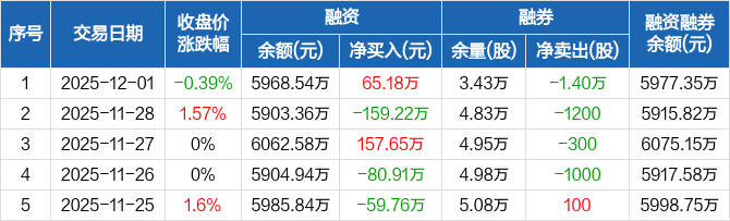 津投城开:融资净买入65.18万元,融资余额5968.54万元(12-01)