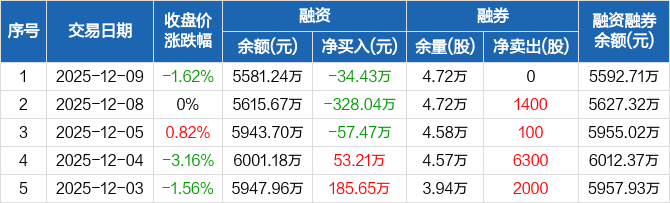 津投城开:融资余额5581.24万元,创近一年新低(12-09)