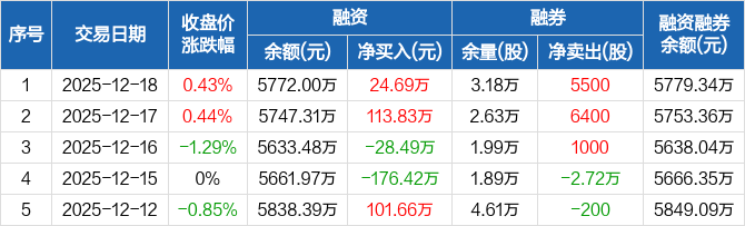 津投城开:融资净买入24.69万元,融资余额5772万元(12-18)
