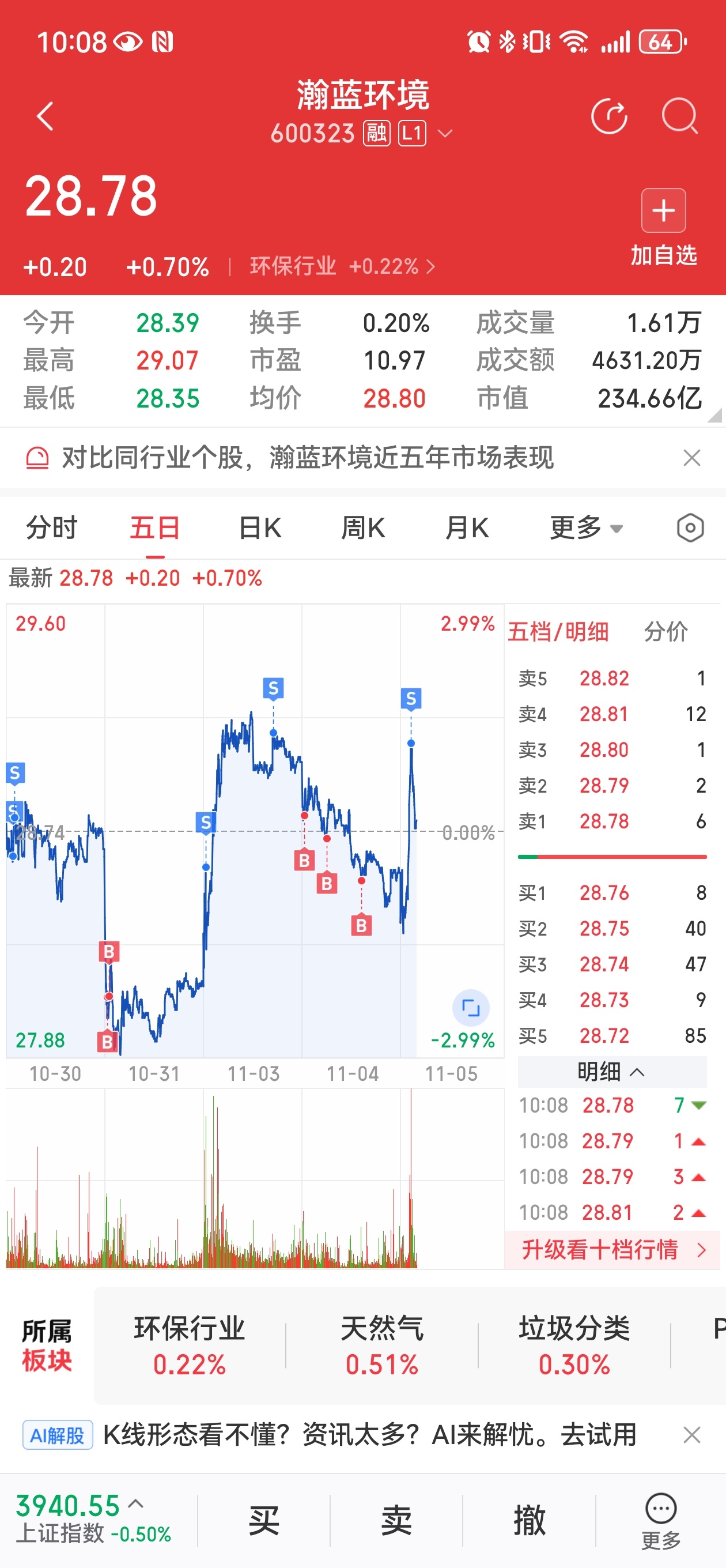 小瀚蓝今天表现已经很优秀了,中线底仓继续做T