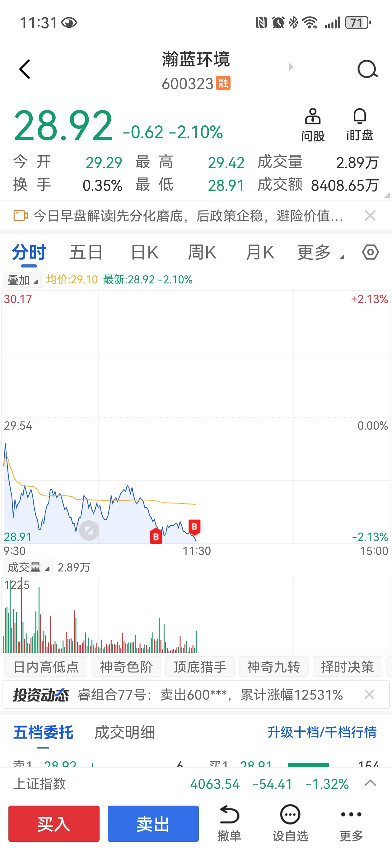 $瀚蓝环境(SH600323)$ 短线仓位加到5%
