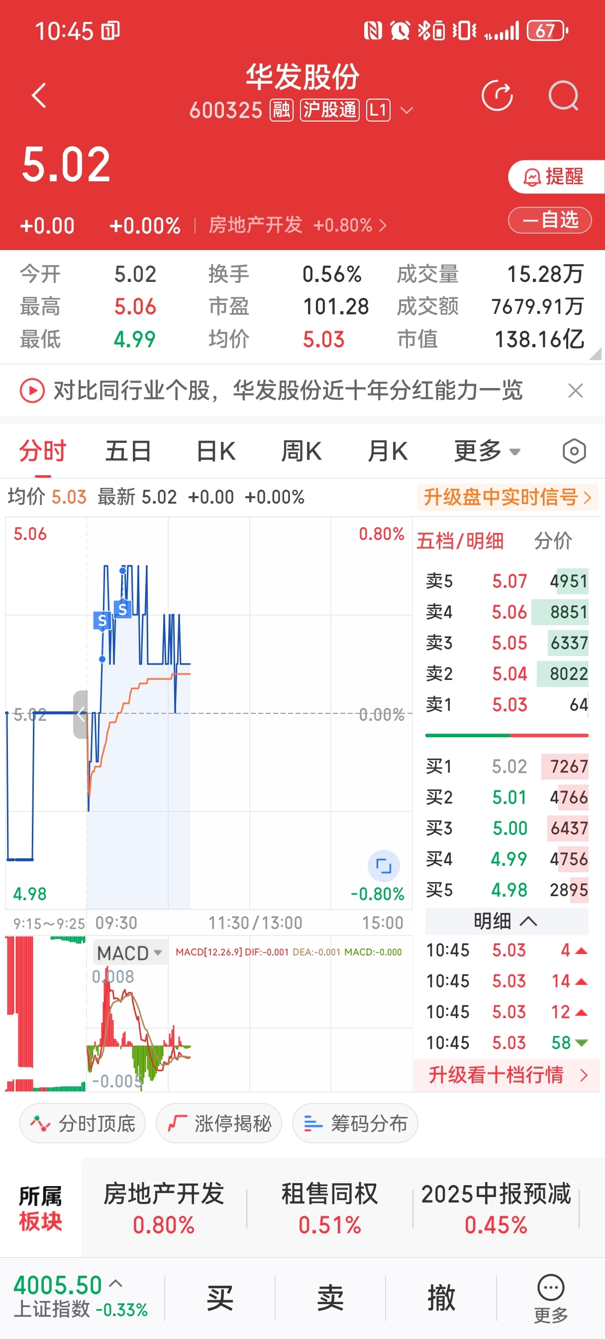 $华发股份(SH600325)$ 极弱反弹,继续调整,后续将继续探底,继续卖出……