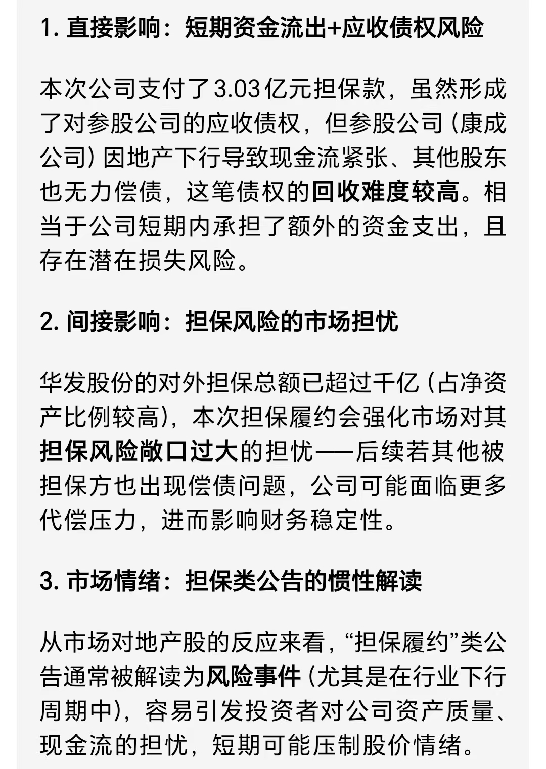 履行担保……偏利空!