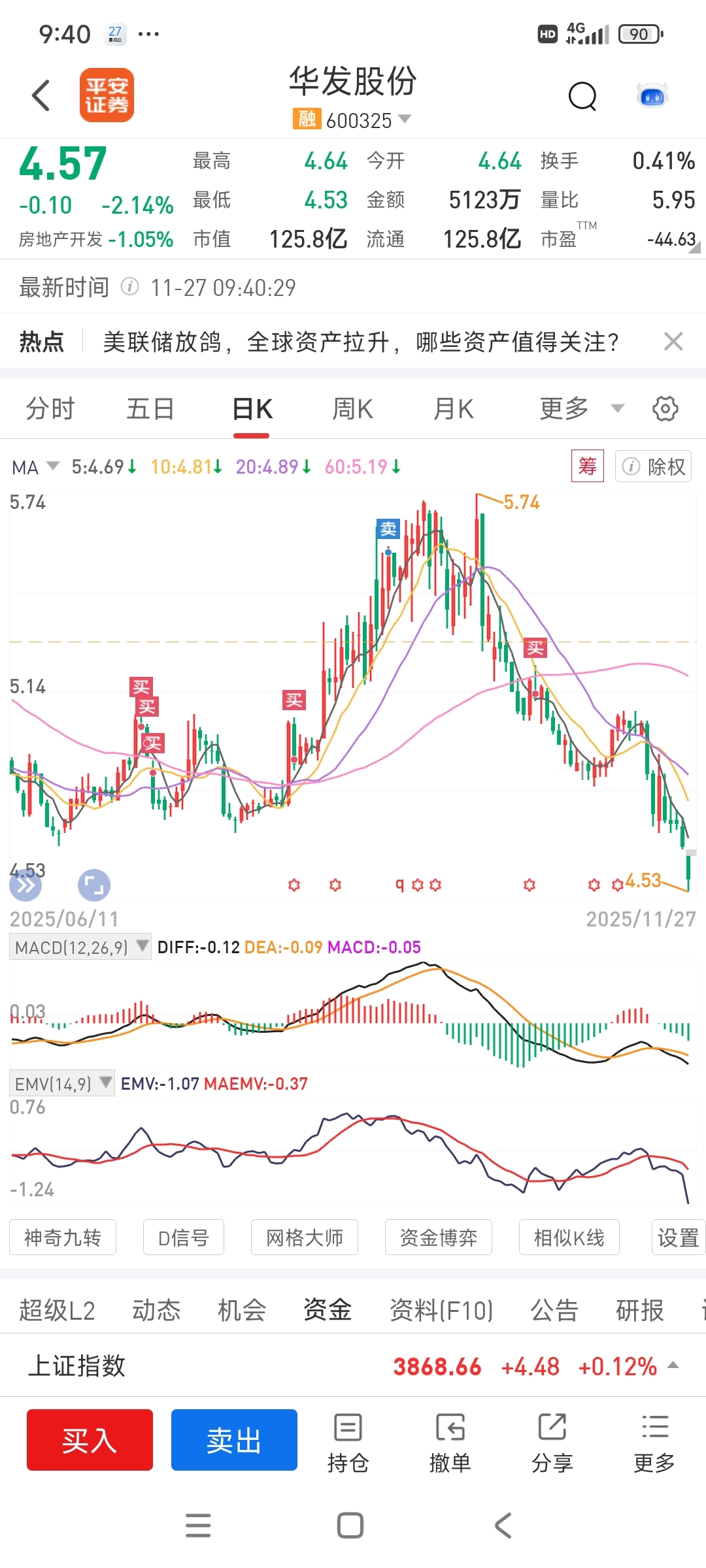 $华发股份(SH600325)$ 我都买快一年了,本来挣了10来个点没走,现在倒亏了十几个点,不补仓就好。三层仓位了。也不打算走了再拿多一年再跌到三元补仓