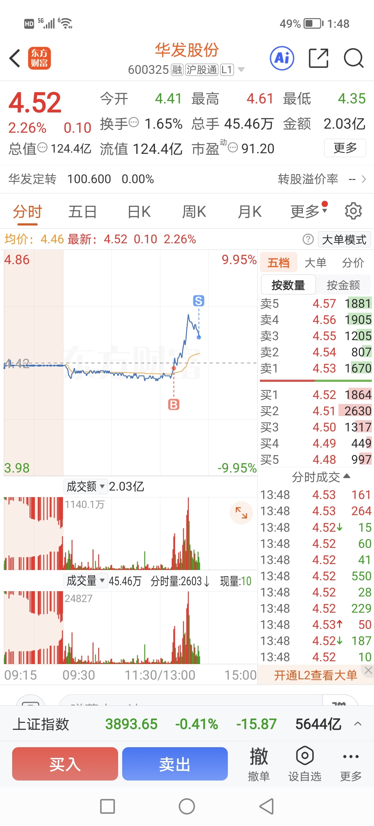 $华发股份(SH600325)$ 先做T锁定这几个点的利润,防止明天吐回去,唉!炒股还是比较难的。