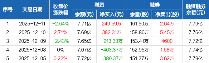 华发股份:融资净买入249.59万元,融资余额7.71亿元(12-11)