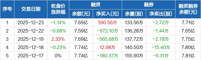 华发股份:融资净买入590.56万元,融资余额7.65亿元(12-23)