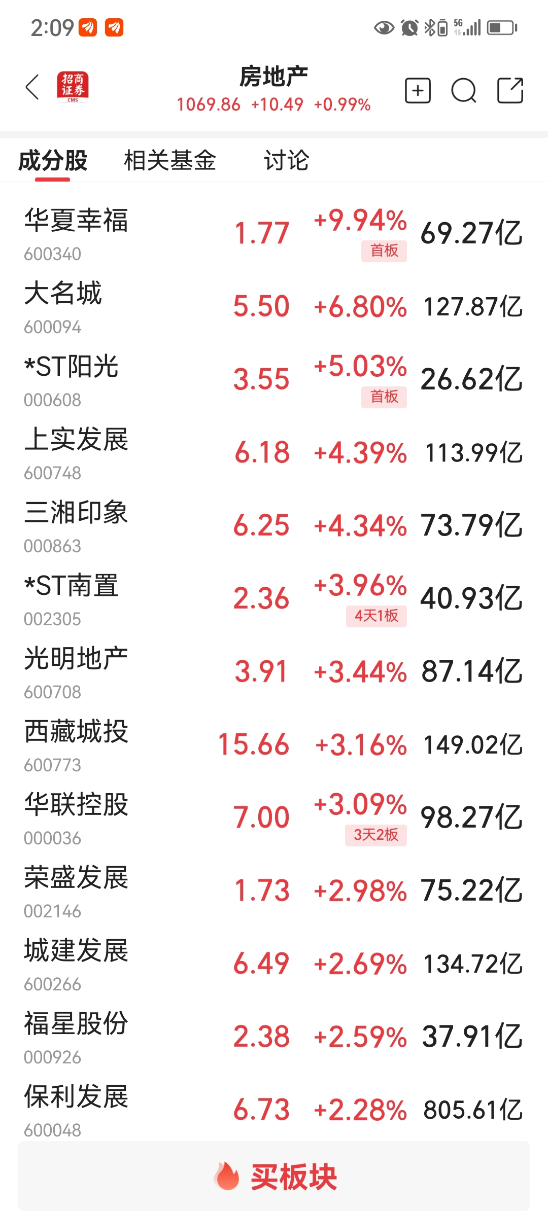 地产板块火箭发射,招商保利千万大单抢筹,板块全红