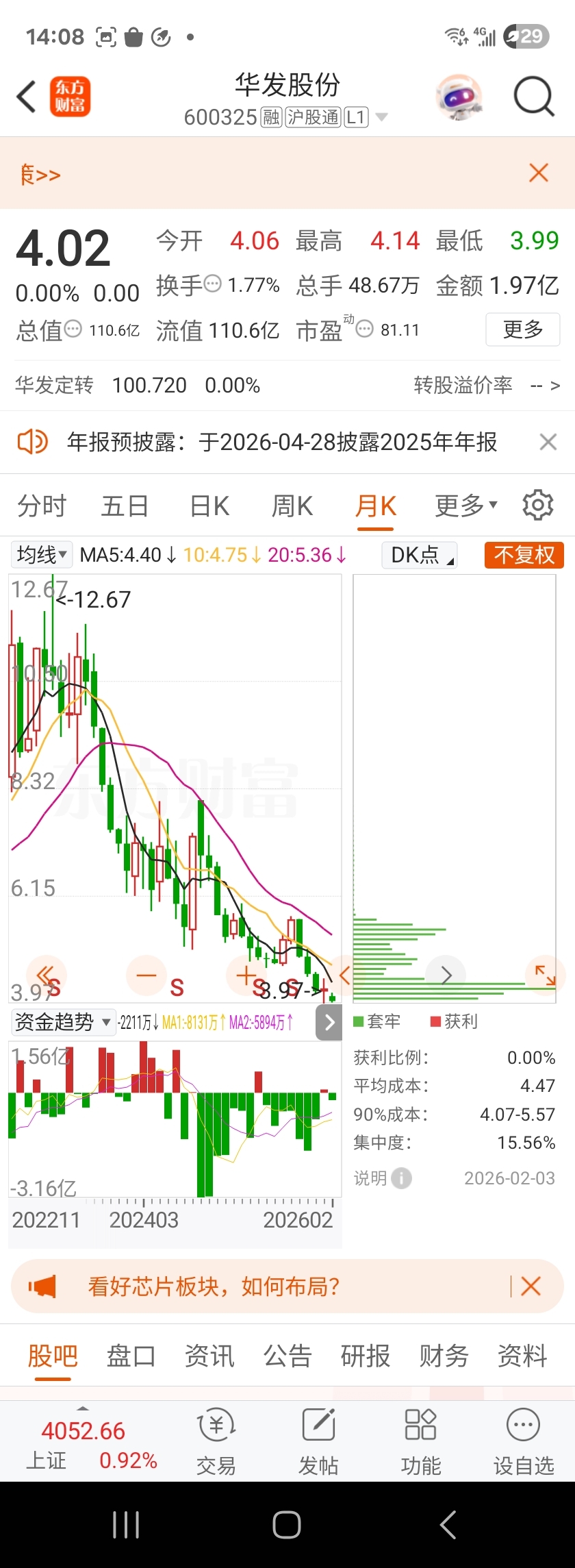 $华发股份(SH600325)$ 月线还是向下走的创新低也就这两天了