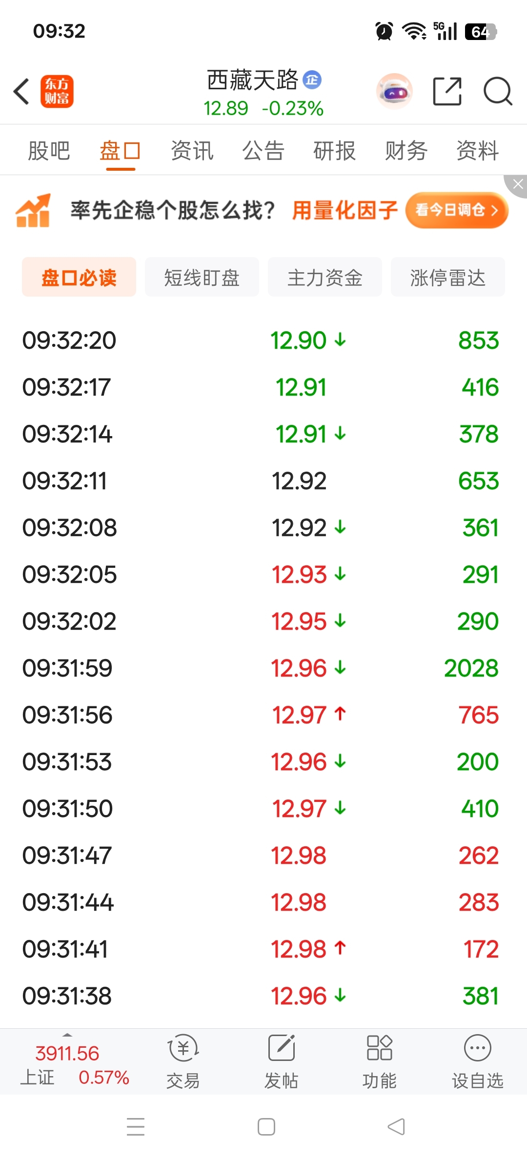 $西藏天路(SH600326)$ 这不是碰到鬼吗,这样砸?开盘就疯狂砸盘
