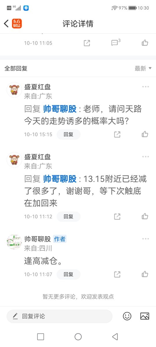 $西藏天路(SH600326)$ 西藏天路,精准把握买点和卖点。节前告诉同学们,在12元上下大胆买入,只进不出抢反弹,当天出现低点11元88,如果同学们相信,操作正确,3天白捡10几个百分点。节后第二天早盘,最高反弹到13元37,我立即告诉同学们,逢高减仓,长期关注我的同学们可以看到,这不是马后炮,有下面图帖为证,到目前为止从来没有高过13元37,证明本老师判断正确。为什么还不给我关注点赞?