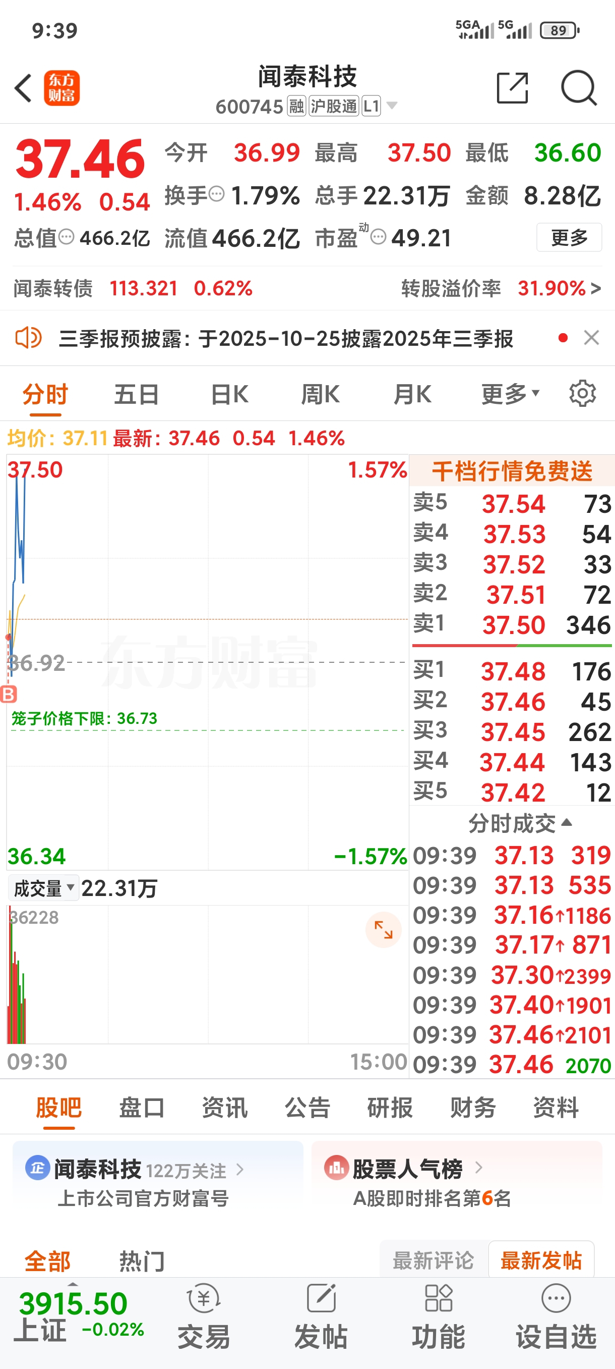 昨天高抛闻泰科技,今天第一时间干
