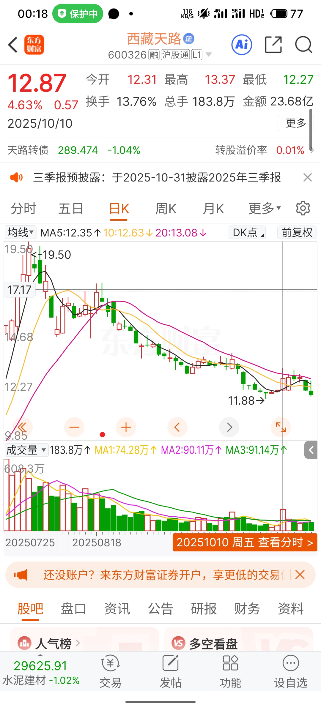 $西藏天路(SH600326)$ 之前23亿一天,暴露了主米底仓也是10个亿最少,这段时间高抛低吸洗散户,但是把自己洗秃了皮,,,自己底仓亏损严重,,,真么多钱,舍不得拉,可笑,可笑,