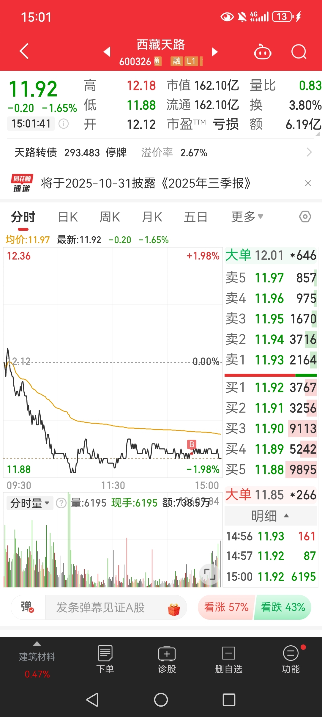 $西藏天路(SH600326)$ 求主力狠狠割我