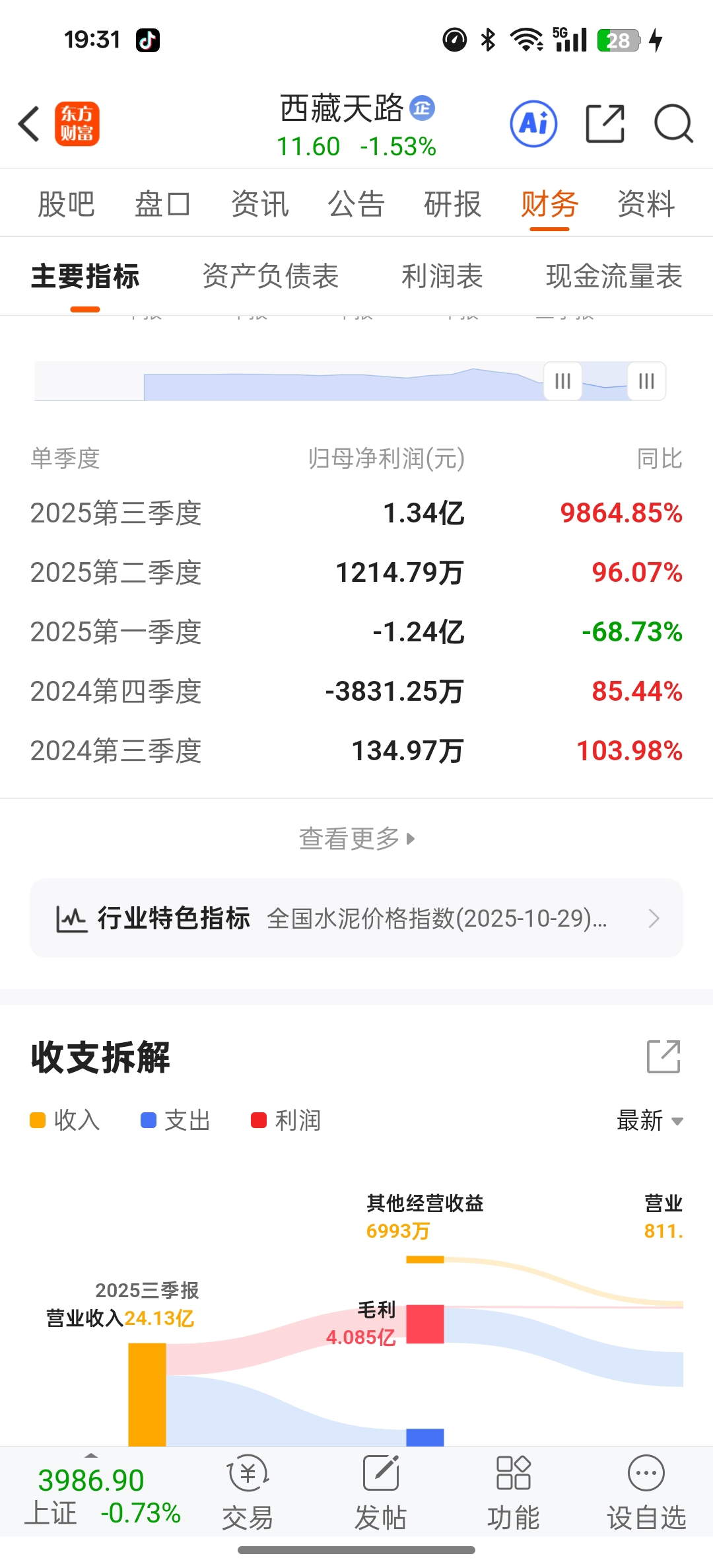 $西藏天路(SH600326)$ 同比增加1万%,刚卖啊!!!