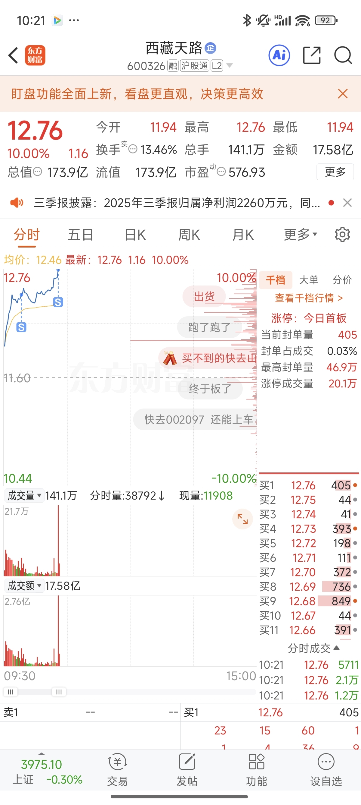 $西藏天路(SH600326)$ 先走了 下周再接回来