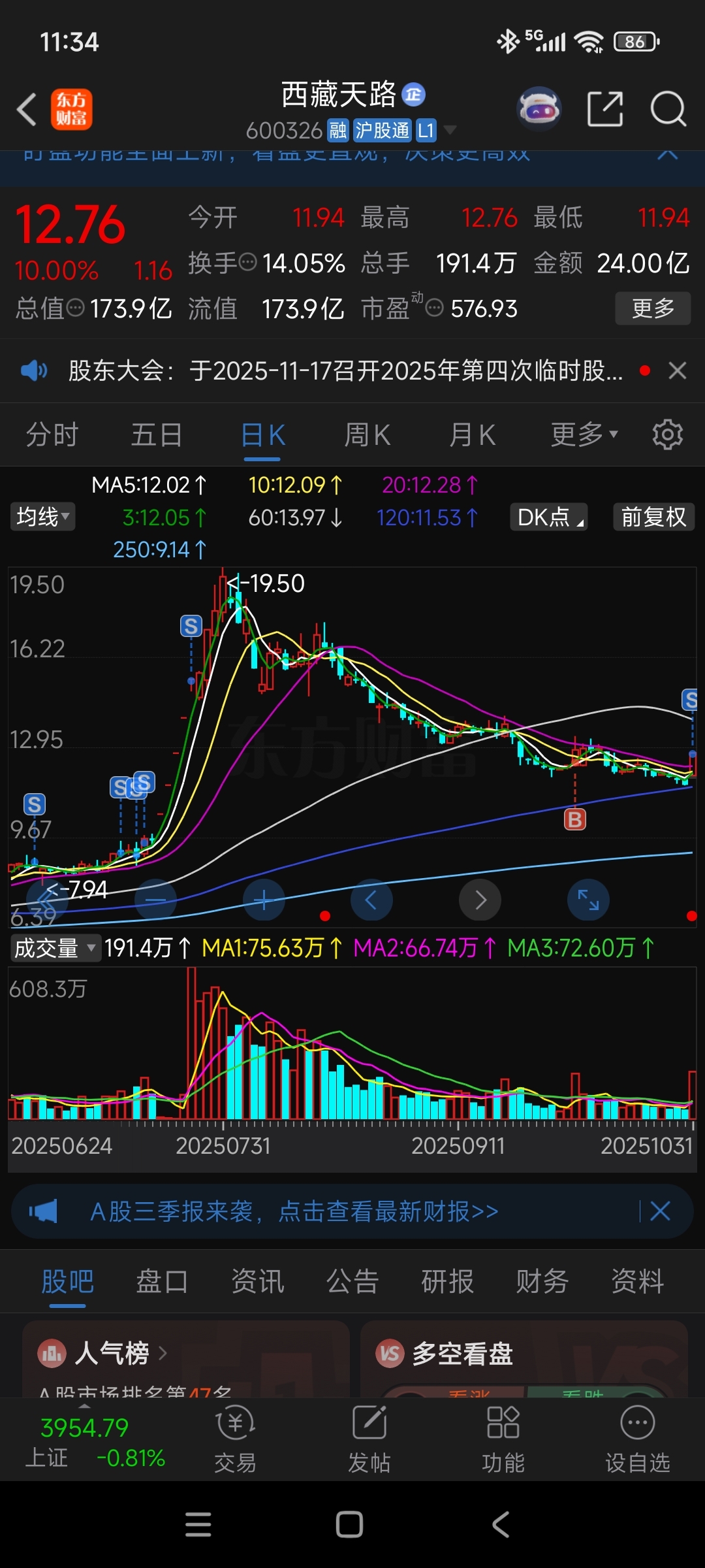 $西藏天路(SH600326)$ 卖完一般都会再涨一大波 留下的发财